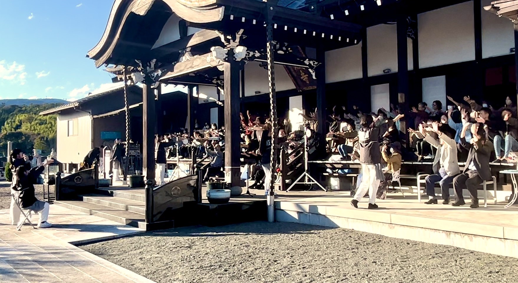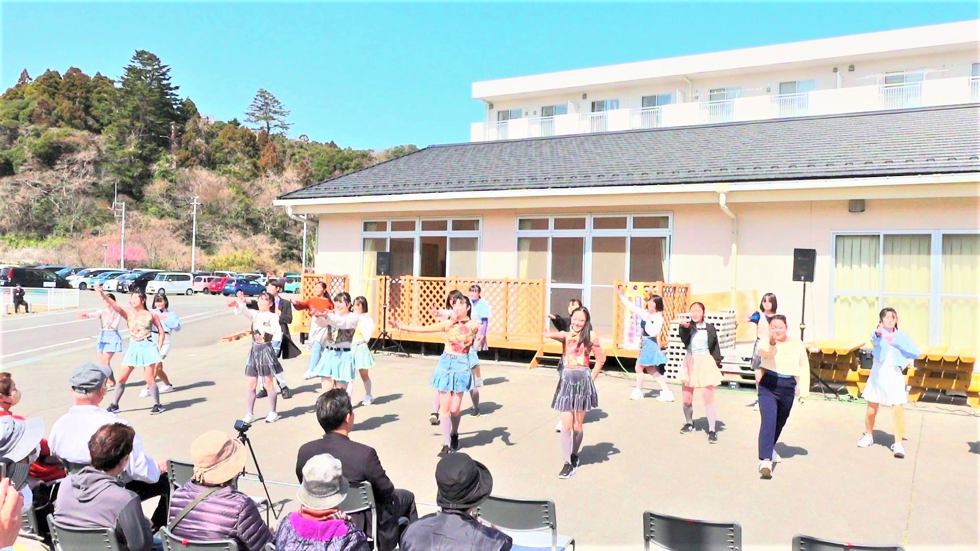 昨年は肌寒くカイロを手に見ていただきましたが、今回はお天気に恵まれ、温かい日差しの中、野外のパフォーマンスを披露することが出来ました。