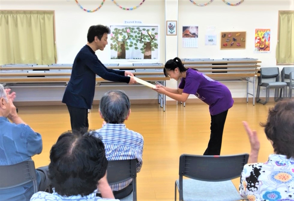 平窪地区にある常勝院でNPO法人ダンス博主催「第2回心の集い」が開催され、エクスプレションD.S.の中高生が中心となって会を進行いたしました。懐メロや流行の曲を子供たちが振付し、ダンスや歌を披露、また音楽の力で戦後の復興を応援した古関裕而さんの世界を、神永作演出振付のダンス作品にして披露いたしました。文化の日の祝日ということでしたが、お忙しい中快く会の趣旨に賛同していただきご参加いただきました皆様、ありがとうございました。お力をお貸しいただきました常勝院の横山さん、ありがとうございます。 -