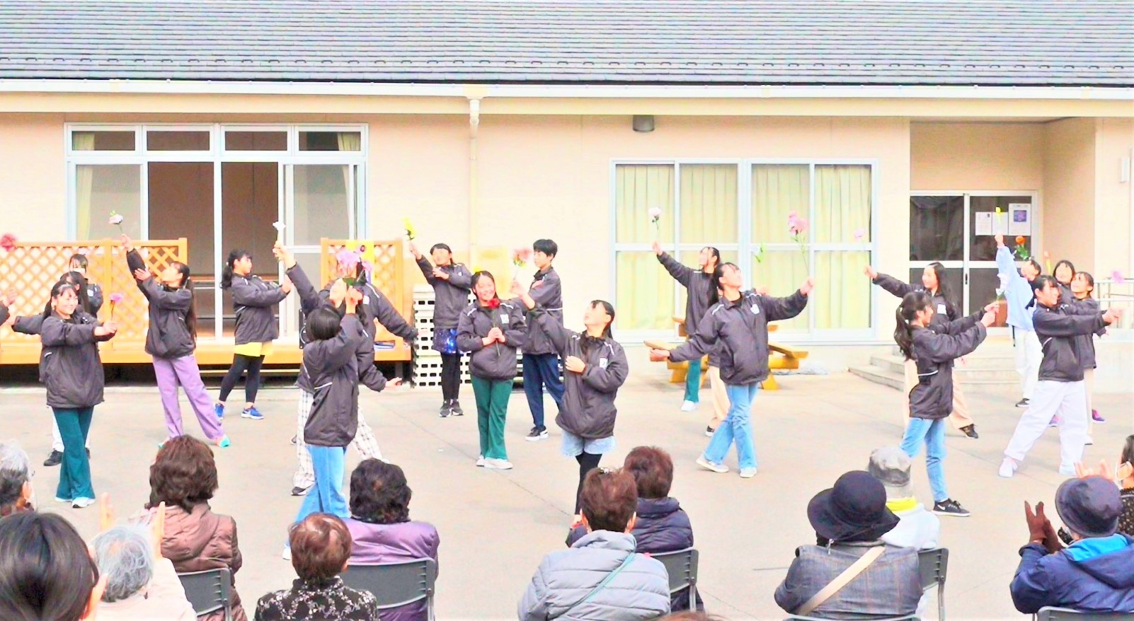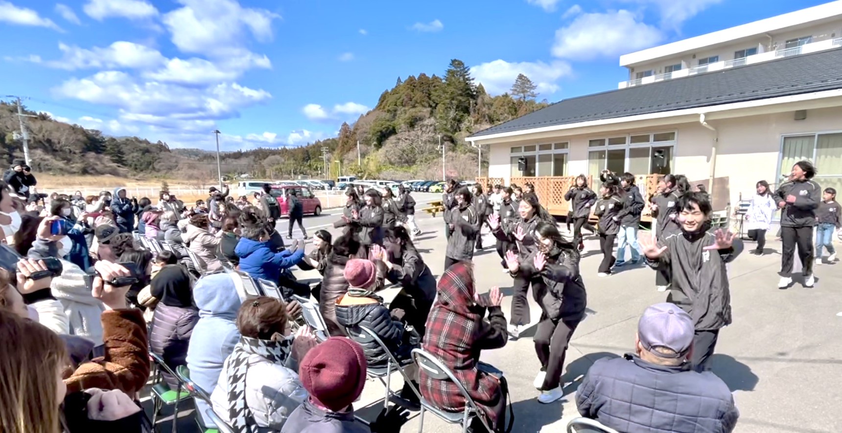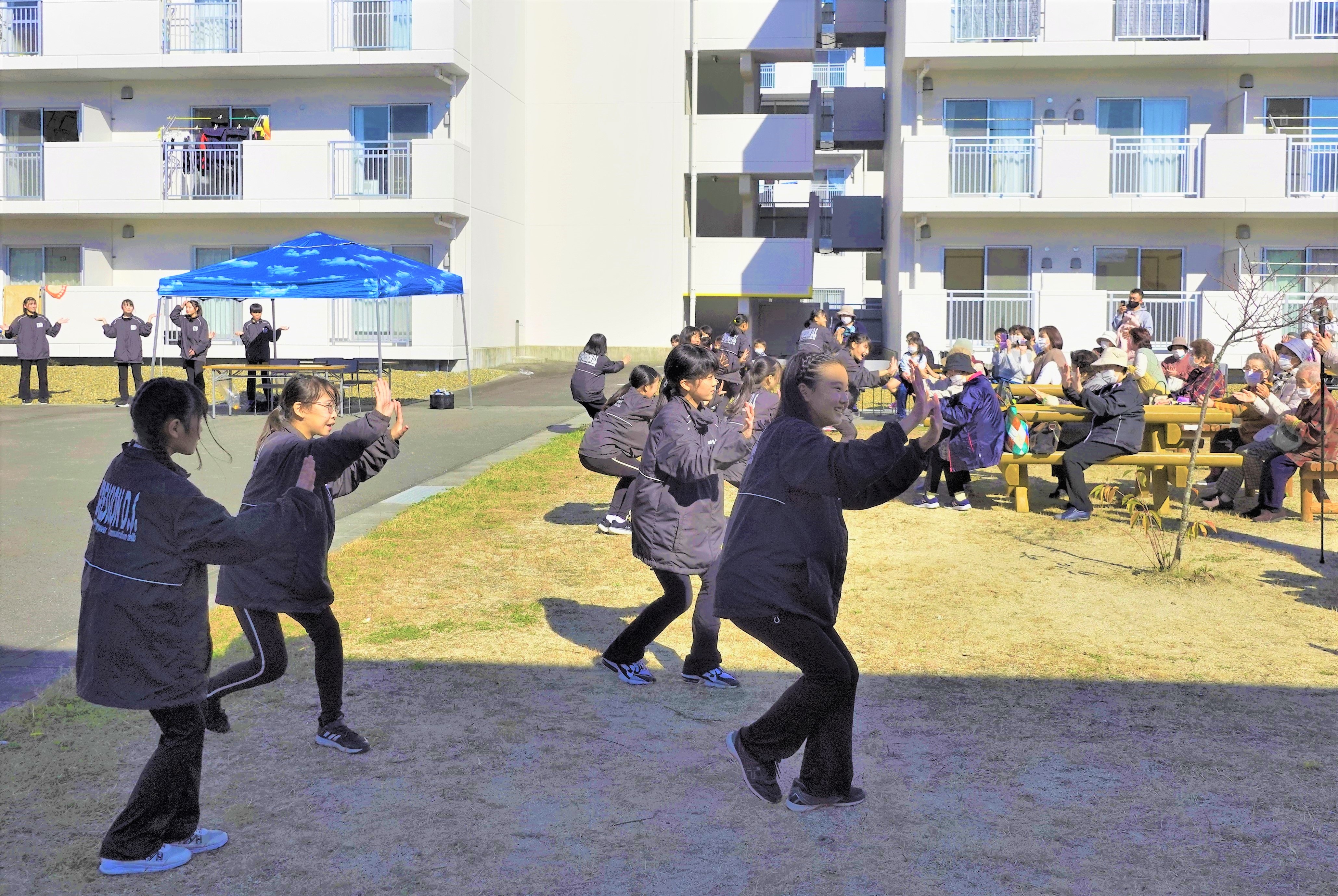 豊間復興住宅にて、ストレッチ運動やダンスを披露させていただきました。豊間のみなさんにはいつも温かく迎えていただき、今回も初めて参加する子供たちの緊張をほぐすように、笑顔で話を聞いて迎えてくださいました。子供たちの成長を優しく見守っていただいています ありがとうございます!