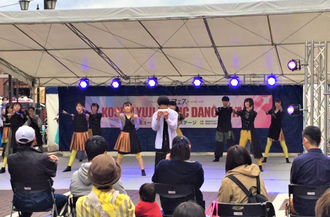 が福島駅前元気プロジェクト委員会主催により開催されました。エクスプレションD.S.は、福島駅特設ステージで行われた「古関裕而ミュージックダンスステージ」に参加。古関裕而さんが作曲した交響楽短詩「大地の反逆」の曲に合わせてショート作品を披露、またK-POPやJ-POPでダンスを披露いたしました。 -