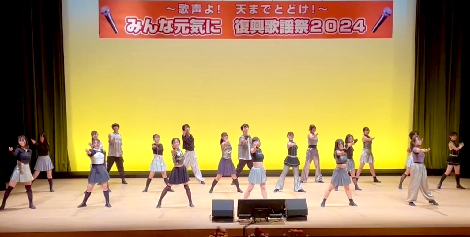 富岡町文化交流センター「学びの森」大ホールにて、ハナミズキの会主催の「みんな元気に復興歌謡祭2024」が開催されました。エクスプレションD.S.の中高生のメンバーが中心となって、懐メロやJ-POP、K-POPでダンスを披露いたしました。