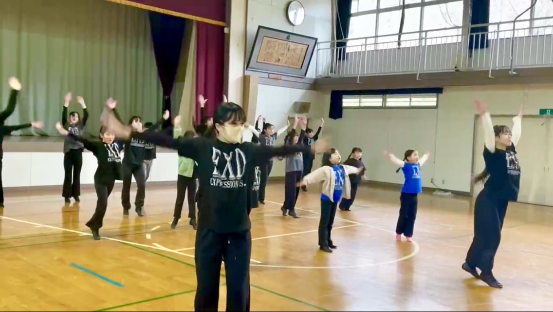 旧好間第三小学校体育館にて(NPO法人ツークンフトローカル運営)スポーツ&カルチャークラブ好間主催のフリーマーケットイベントが開催されました。エクスプレションD.S.はダンスのワークショップと、ダンスを披露させていただきました。今回は高校生メンバーは参加せず、小学生と中学生メンバーのみでの参加となりましたが、ダンスパフォーマンスだけでなく、ワークショップも小中学生が中心になって行い、それぞれがとても成長に繋がるイベントとなりました。 -