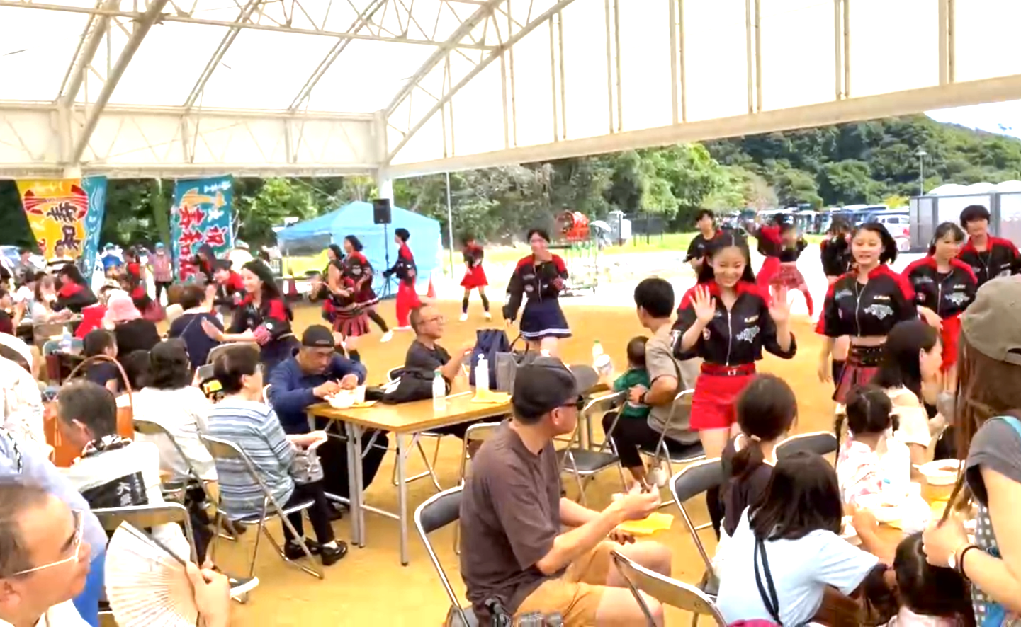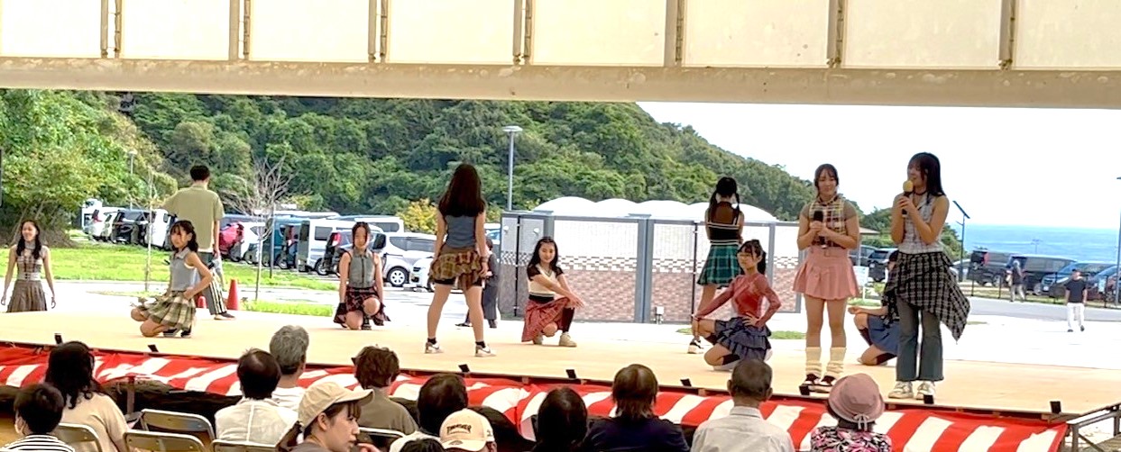 イベント会場には干物の炭火焼きや、様々なキッチンカーが大集合!9月にもかかわらず真夏のような日差しの中、エクスプレションD.S.は中高生が中心となってダンスパフォーマンスを披露いたしました。