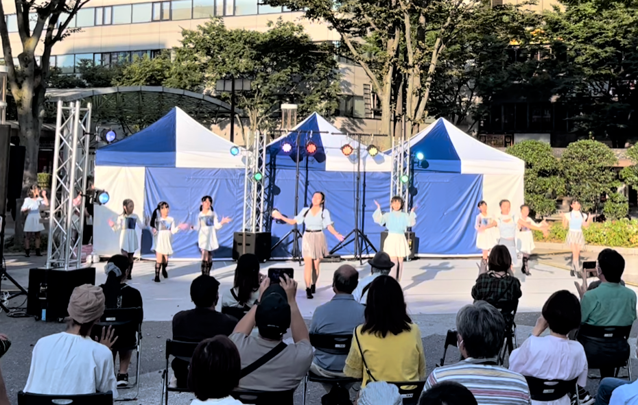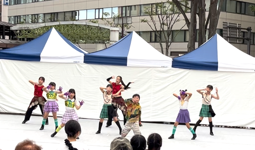 沢山のお店と、沢山の人でいっぱいの会場の中、リトルさんから高校生までのメンバーでダンスを披露いたしました。会場の雰囲気に、緊張してしまったジュニアさんの顔もちらほら見かけましたが、沢山の方に足を止めていただいて、温かい拍手をいただきました。ありがとうございました。 -