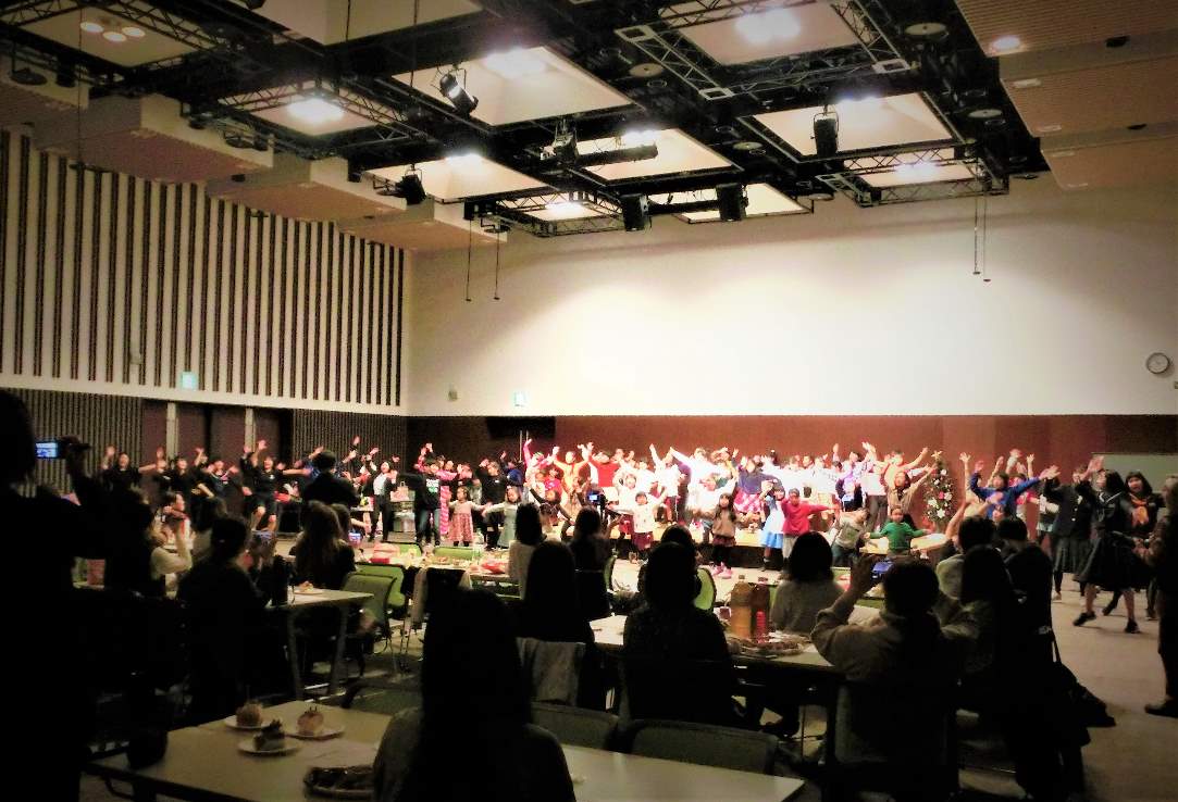 台風19号と大雨により被害にあわれた方が避難している内郷コミュニティーセンターで、ピースポート主催によるクリスマス会が開催され、エクスプレションD.S.の生徒も参加させていただきました。ダンスを披露したり、いっしょにゲームをしたり、笑顔のひと時をおくり、こころ緩める瞬間に涙が止まらない方もいらっしゃいました。「今後も来てください」と、うれしい言葉もいただき、メンバーも嬉しそうでした。ありがとうございました。 -